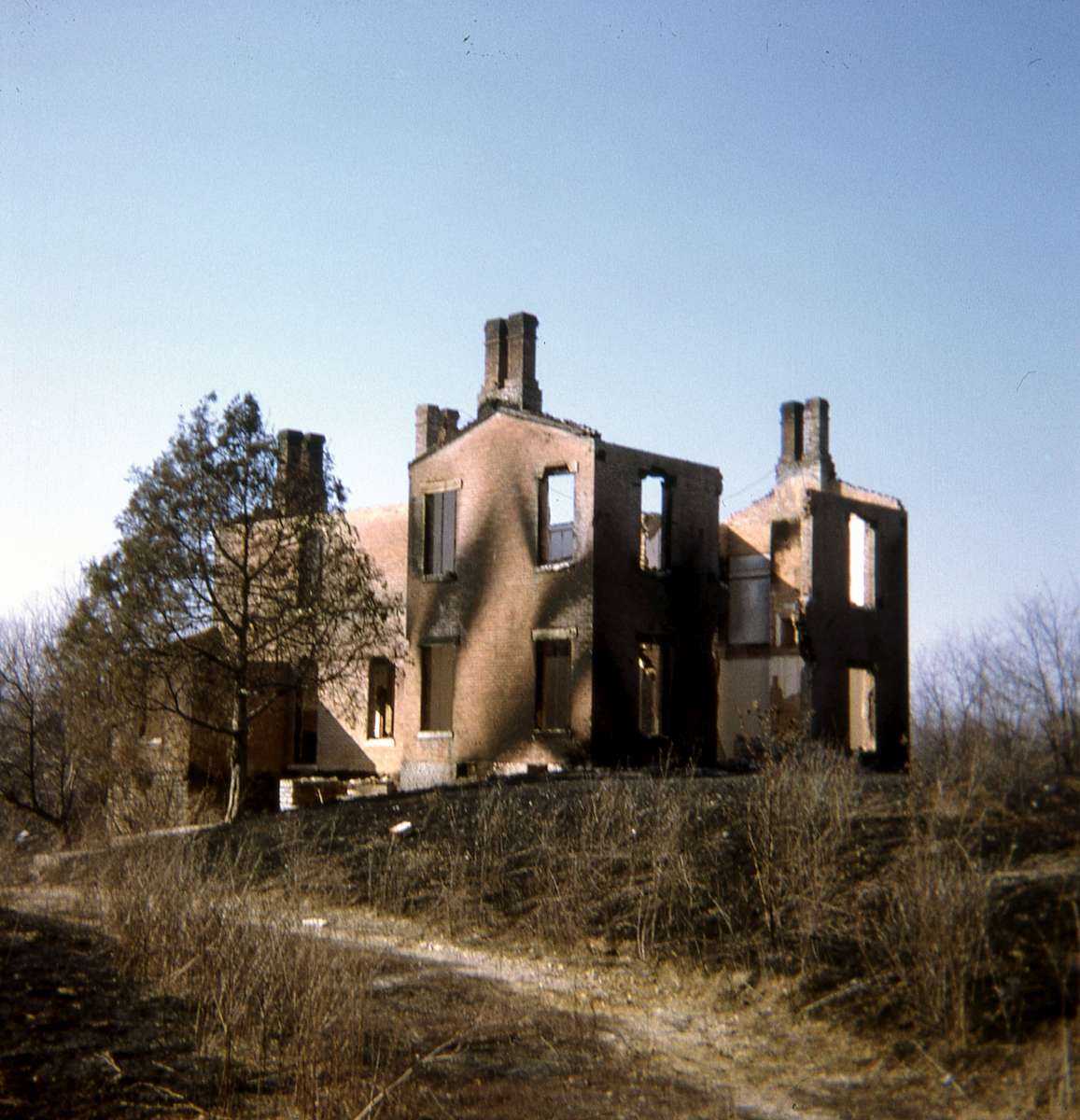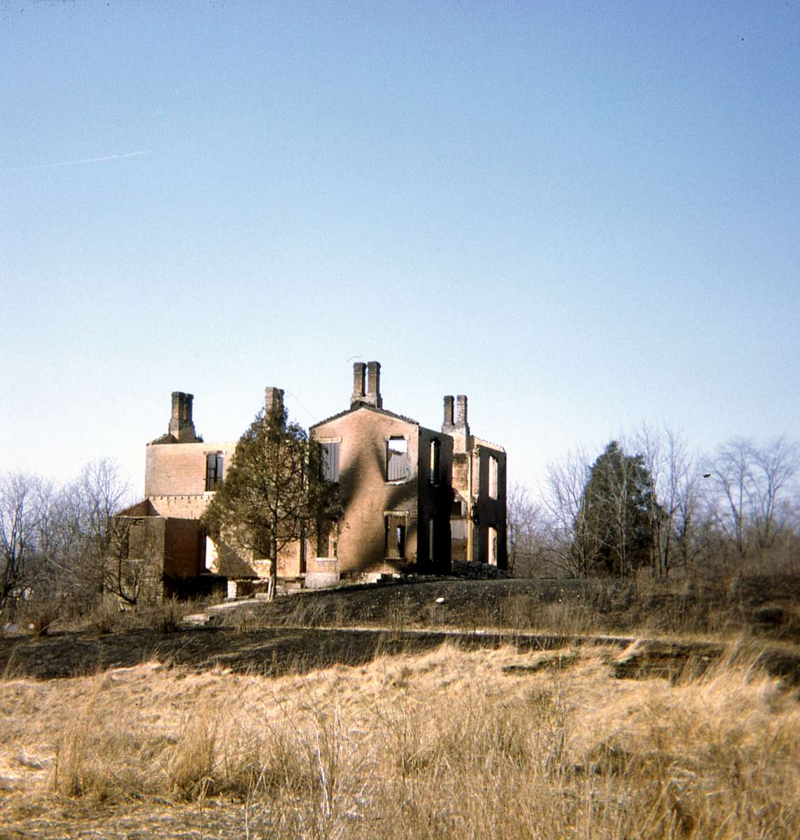 Continue straight on McKay Road when Lantz Road makes a 90° left curve. In the neighborhood to your left was the 217-acre farm of Jonathan "Squire" (1802-1884) and Mary Smeltzer-Hanes, second son of Judge & Mary Haines. He was an active distiller, and followed his log cabin with a 13 room, two-story home with bricks fired from clay dug from nearby Bullskin Run creek. The home burned during restoration in the early 1970's.